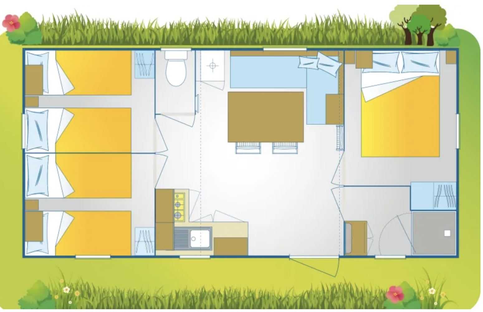 zakwaterowanie w komfortowym domu 4- 6 os. każdy domek posiada 2 lub 3 oddzielne sypialnie wspólny salon z wyposażonym aneksem kuchennym, taras i klimatyzacje